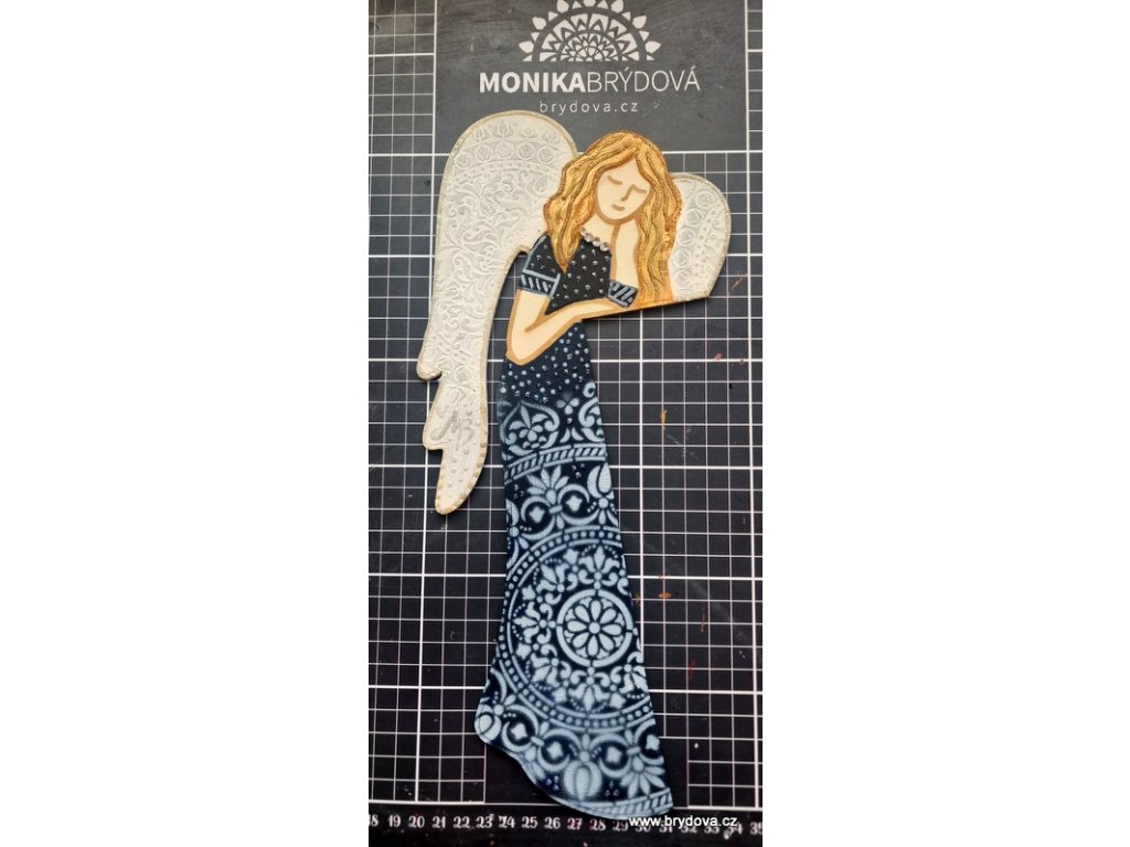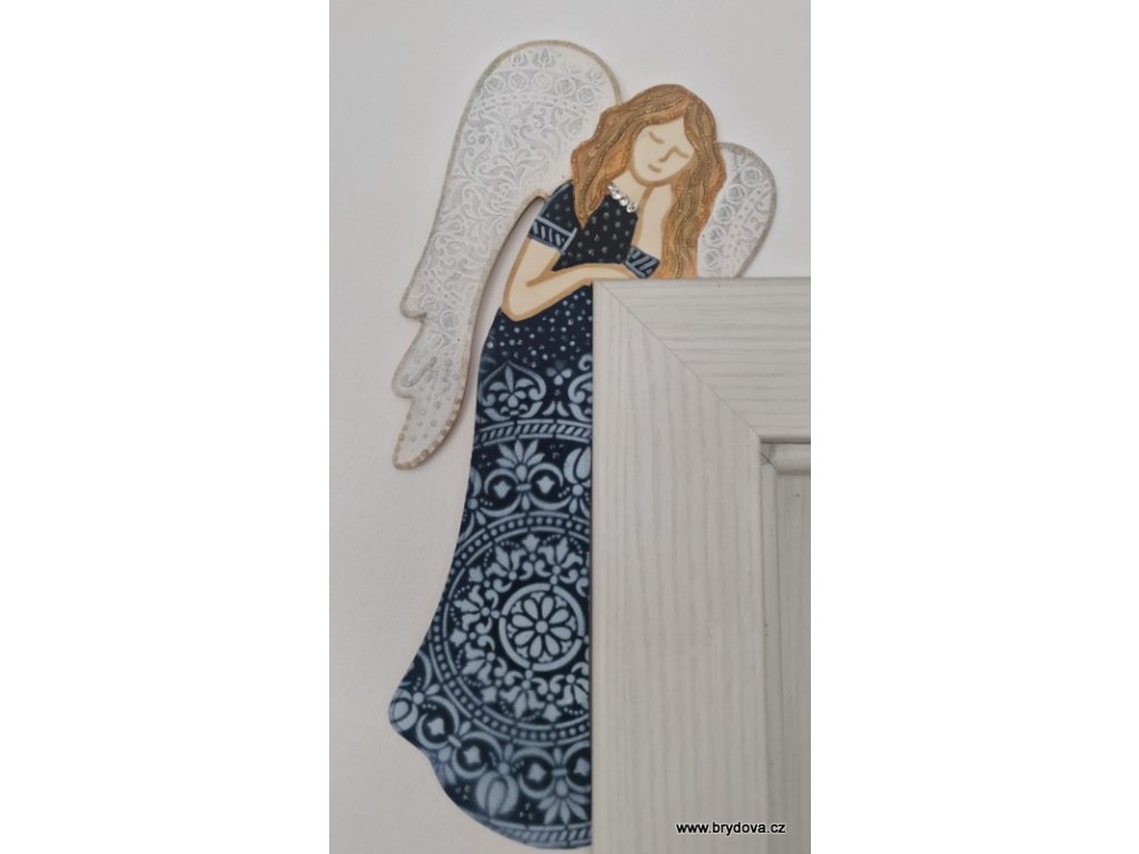 Dřevěný autorský anděl na rám dveří - 39 x 14 cm