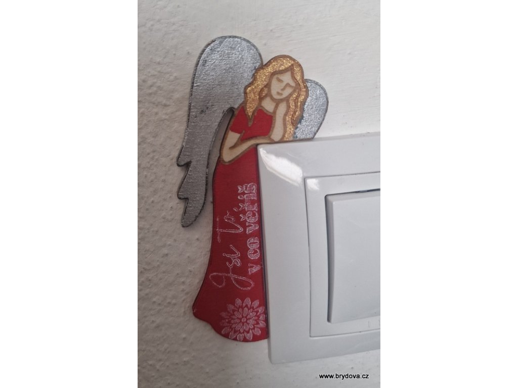 Dřevěný andílek na vypínač - 10 x 5 cm