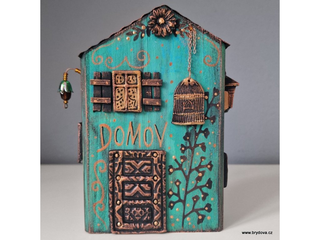 Domek tyrkysovo-měděný s klecí