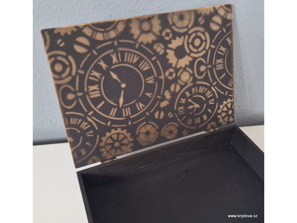 Dřevěná krabička s autorským zdobením - vhodné na hrací karty - velikost 17,5 × 12,5 × 3,5 cm