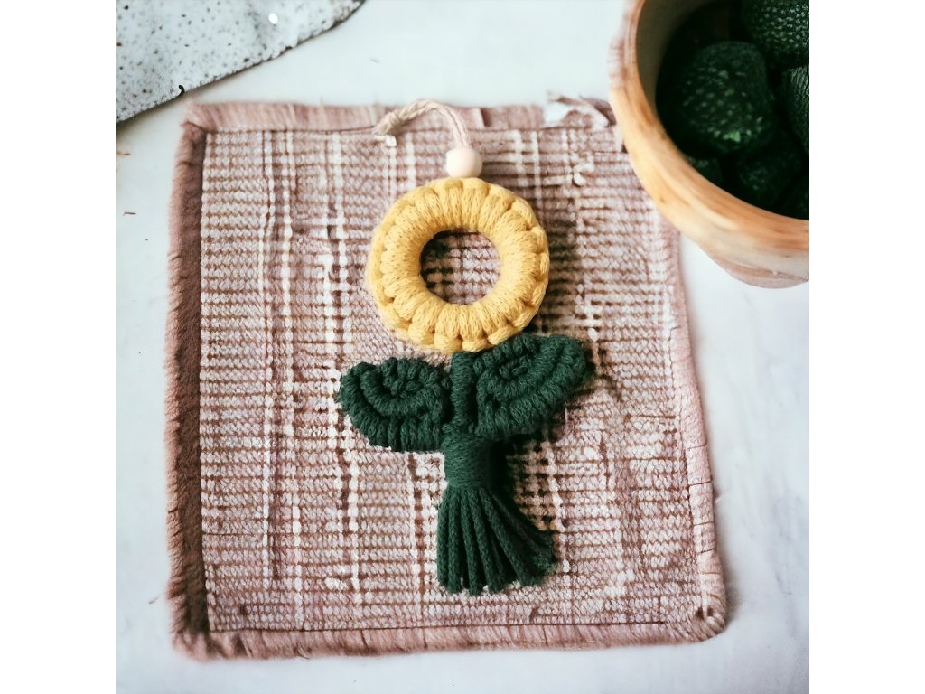 Macramé květinka tmavě žlutá