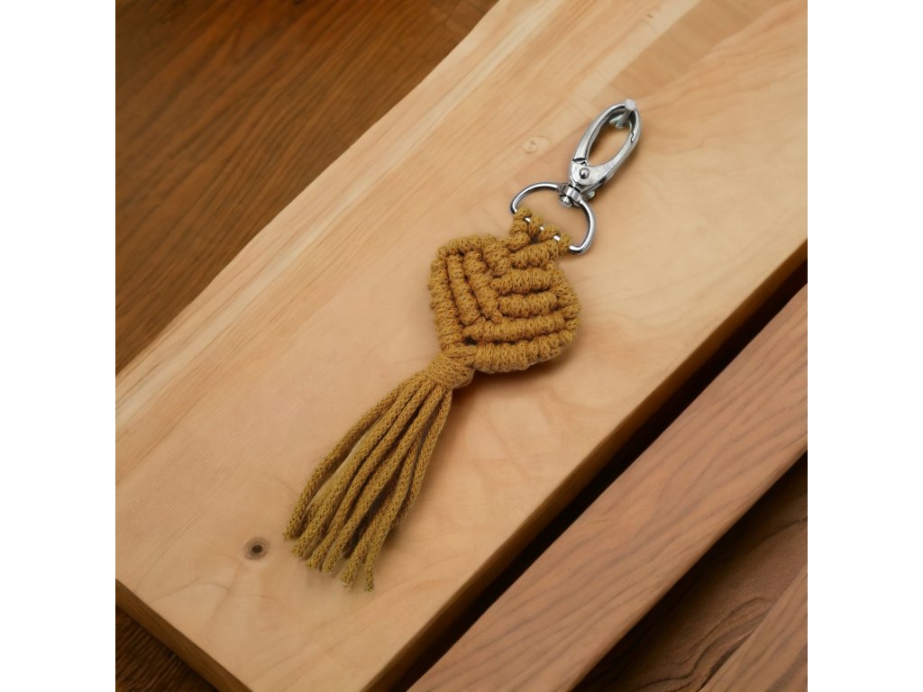 Macramé srdíčko, rozměr 19,5 × 7 cm.