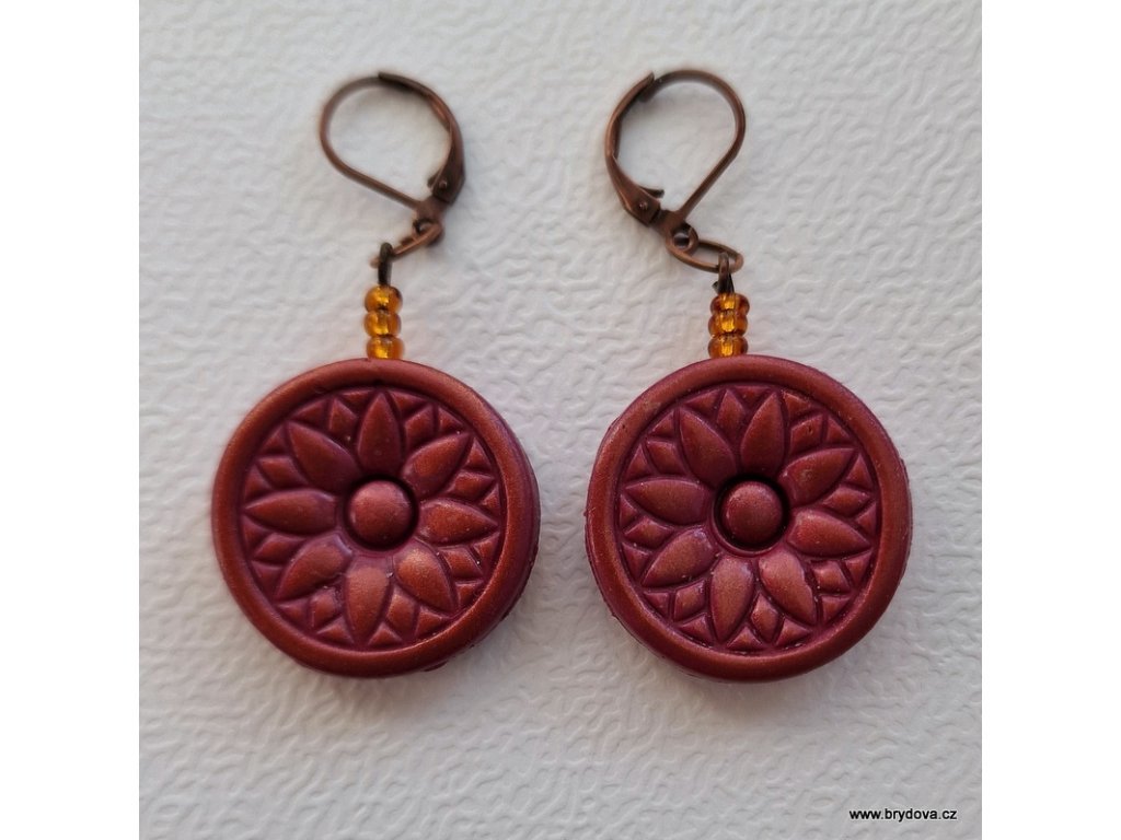 Náušnice FIMO vínové s patinou