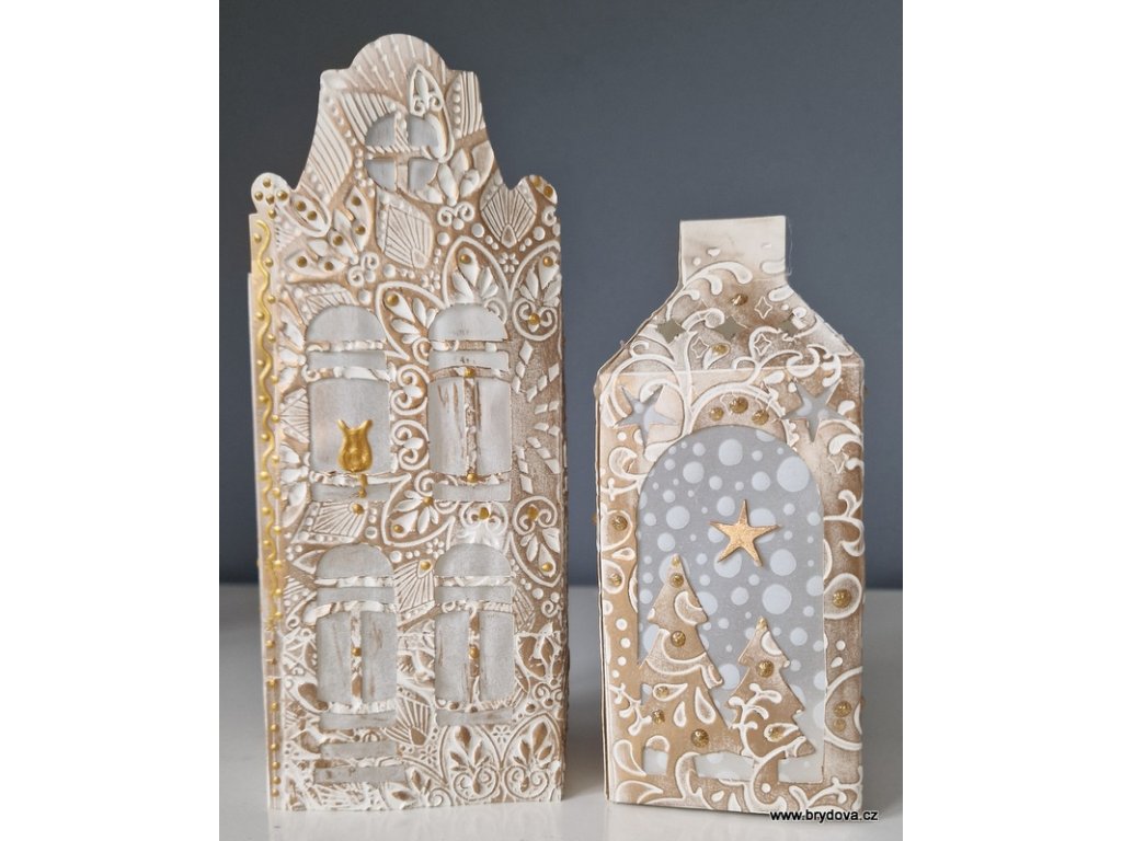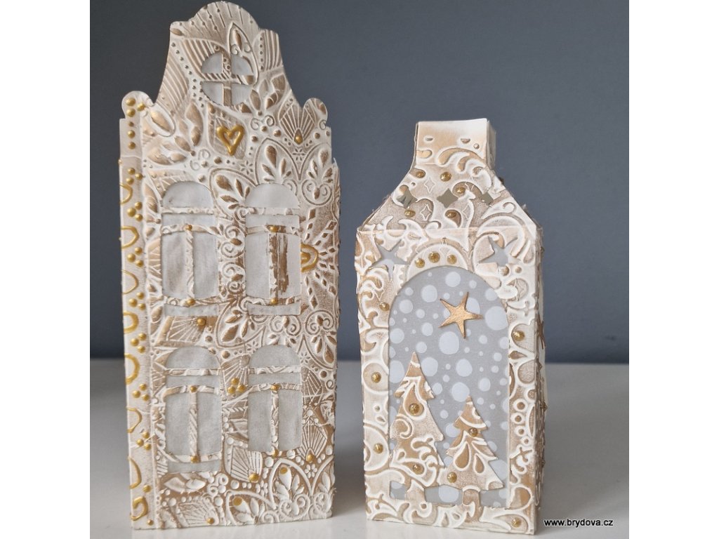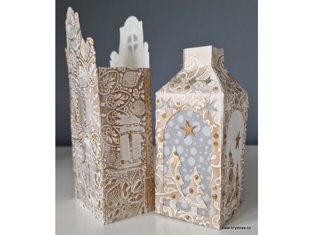 Papírový domeček a lucerna - zlatobílé