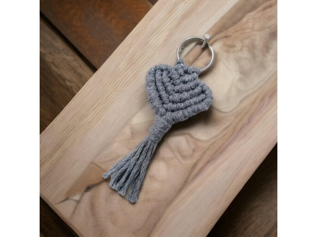 Macramé srdíčko, rozměr 12 × 4,5 cm.