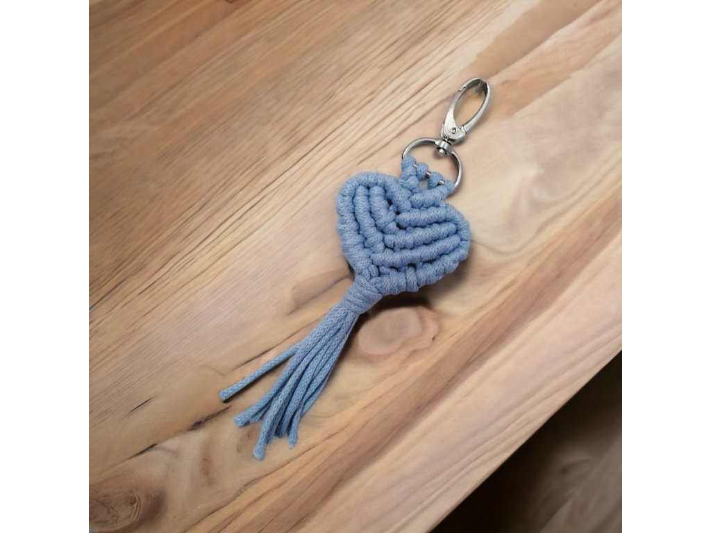 Macramé srdíčko, rozměr 20 × 6,5 cm.