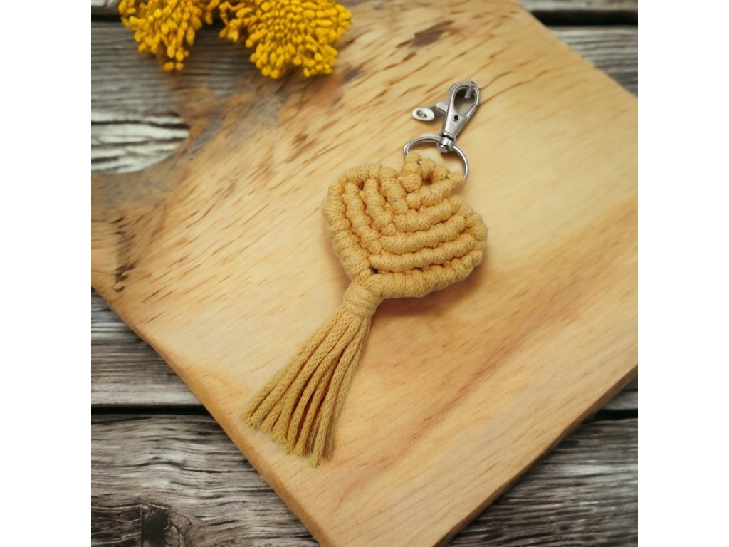 Macramé srdíčko, rozměr 19,5 × 7 cm.