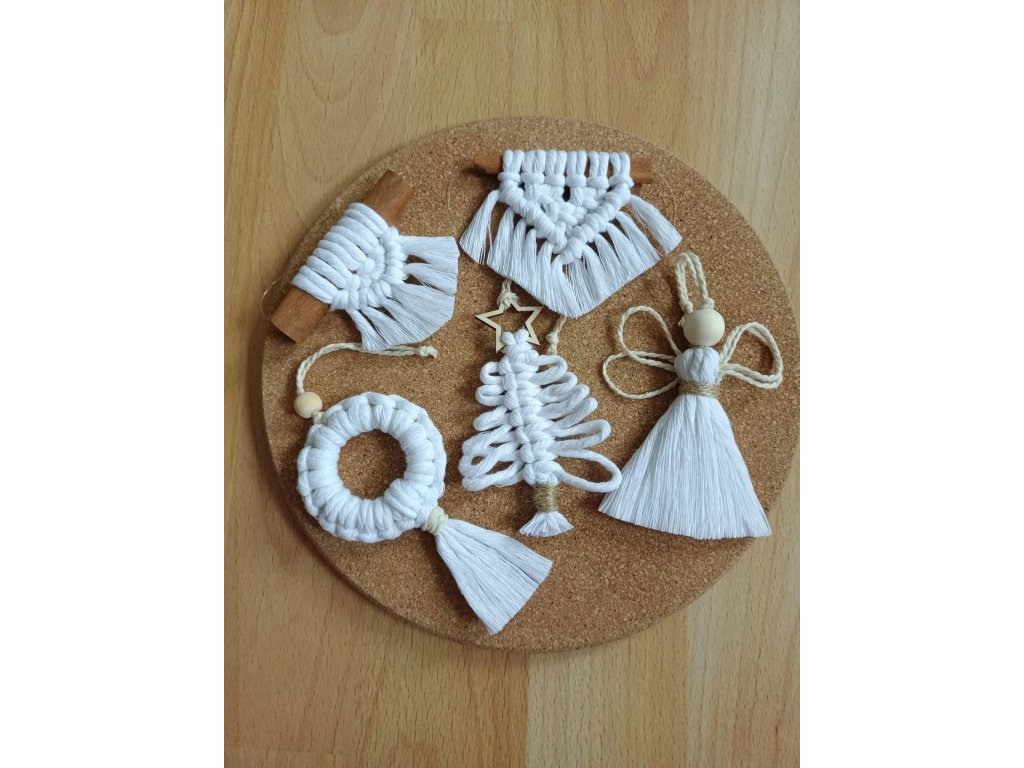Macramé vánoční ozdoby bílé