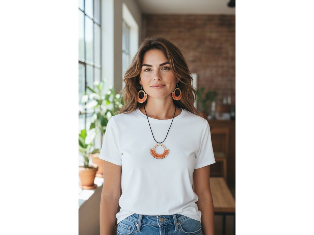 Sada náušnice a náhrdelník v oranžové barvě