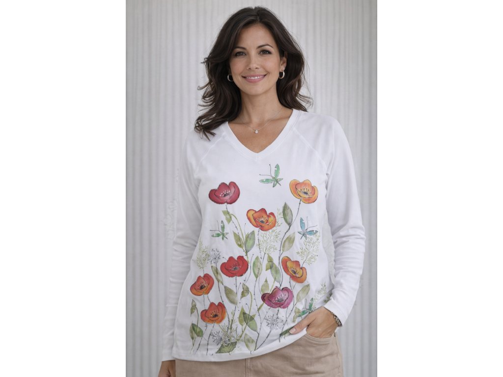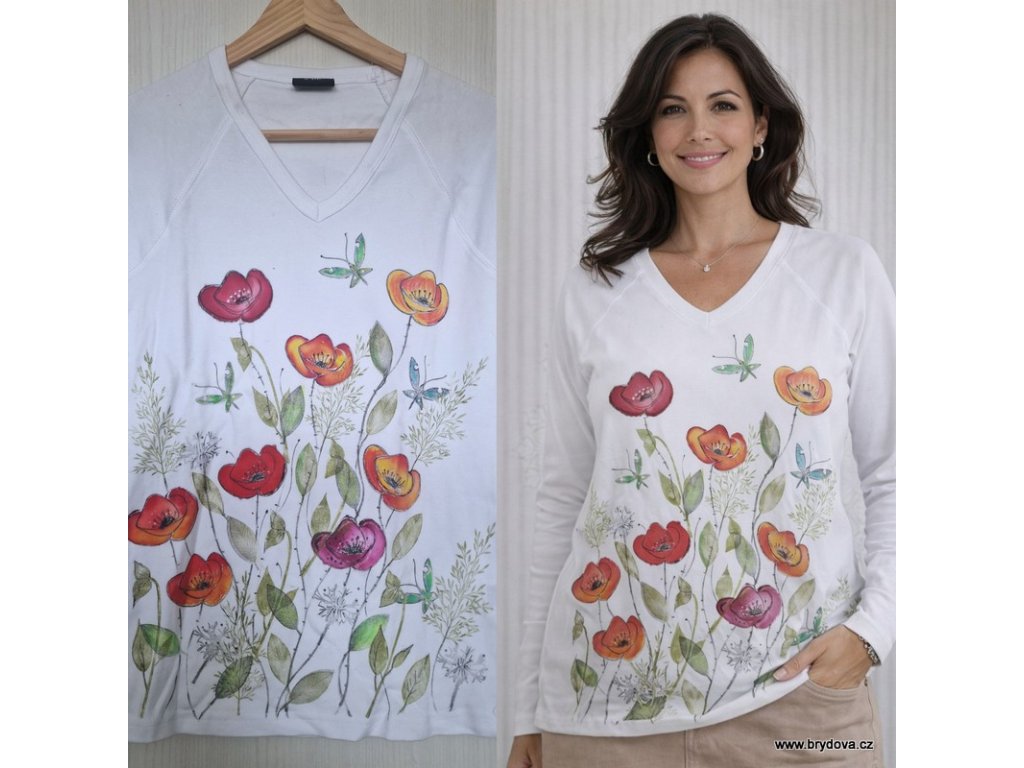 Bavlněné triko dlouhý raglánový rukáv, bílé - velikost M
