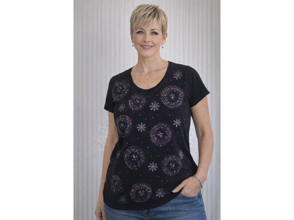 Prát ručně nebo v pračce na šetrná program a naruby. Obrázky žehlit přes pečicí papír nebo ze zadní části.