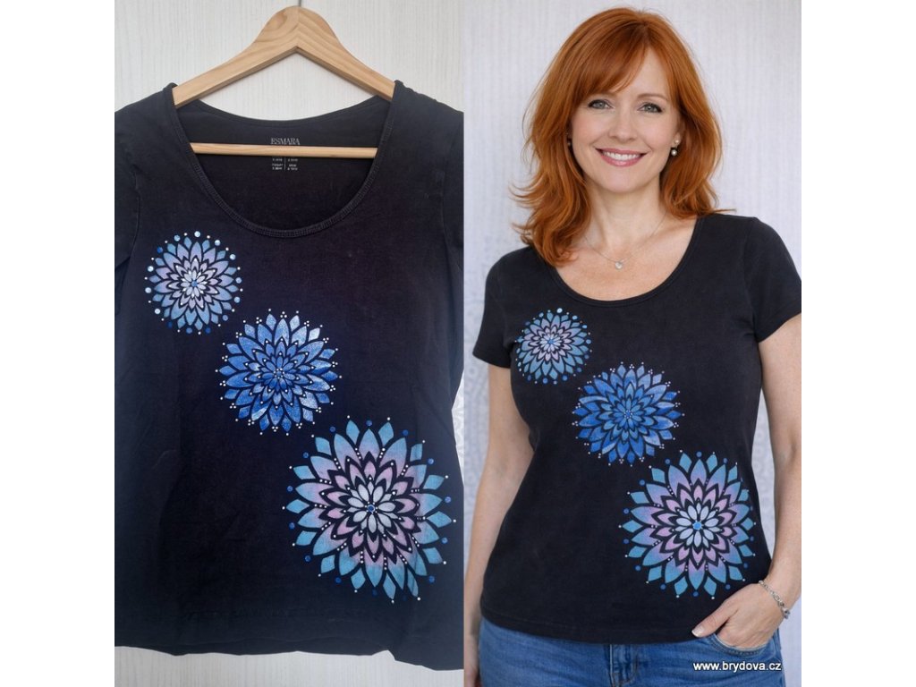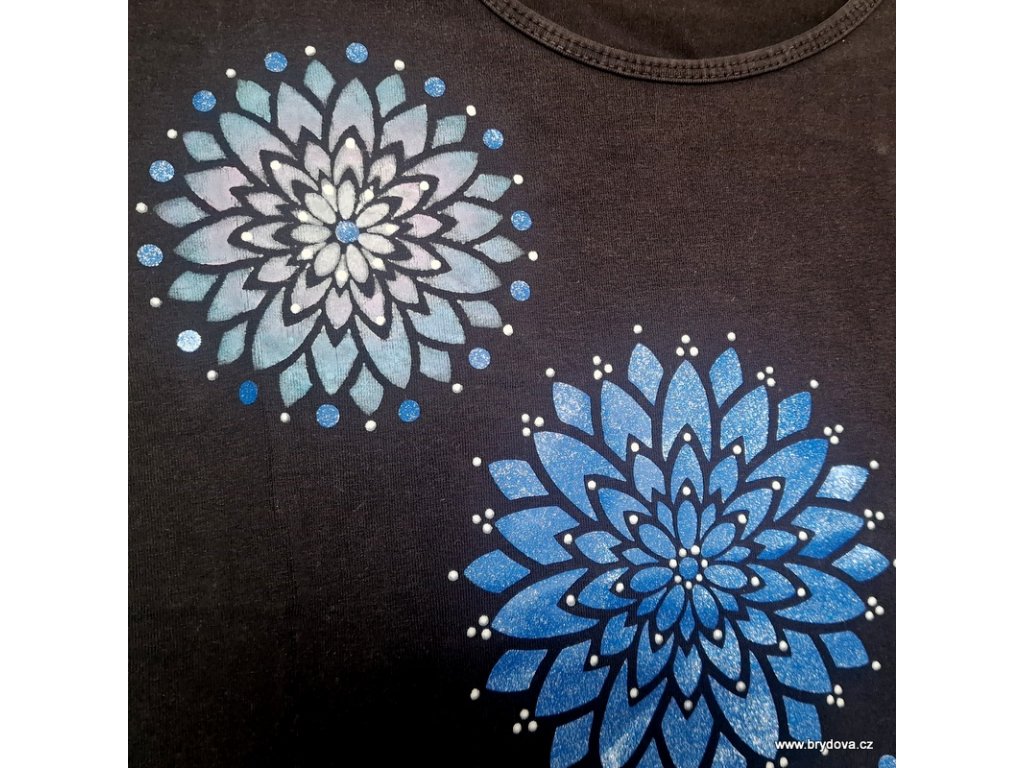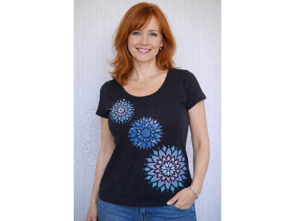 Triko dámské černé s modrými mandalami - S