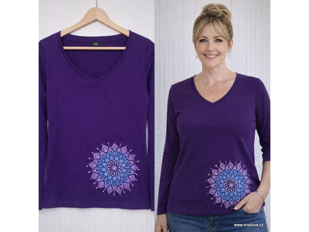 Bavlněné triko 3/4 rukáv, fialové- velikost asi M (v Loskutákovi jsme museli odstříhávat značky)