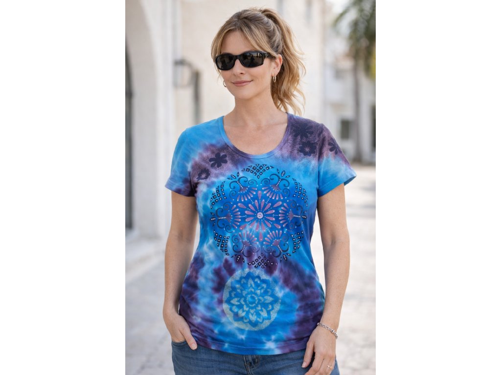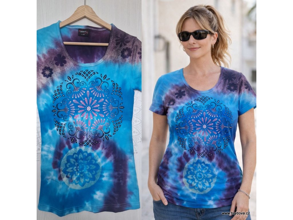 Triko dámské tyrkysovo-fialové L - kombinace technik