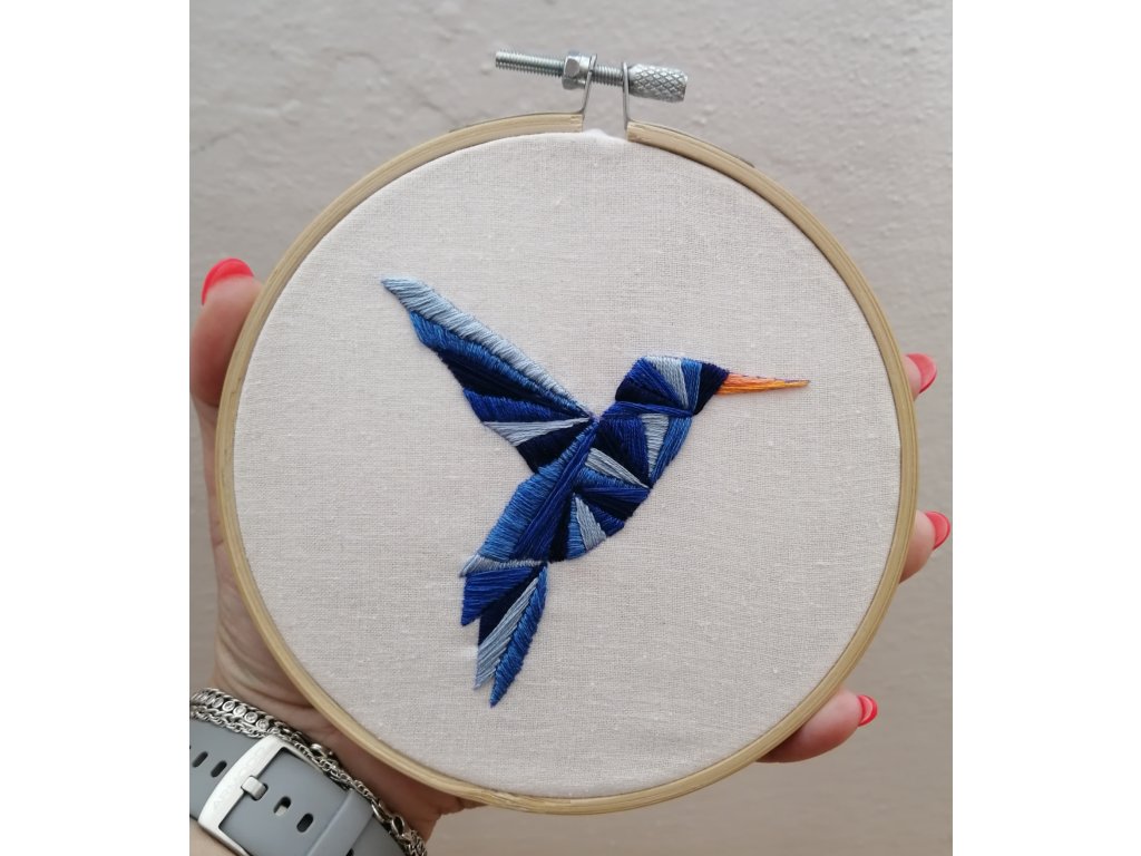 Vyšívaný obrázek v bubínku, který je rovnou k zavěšení.