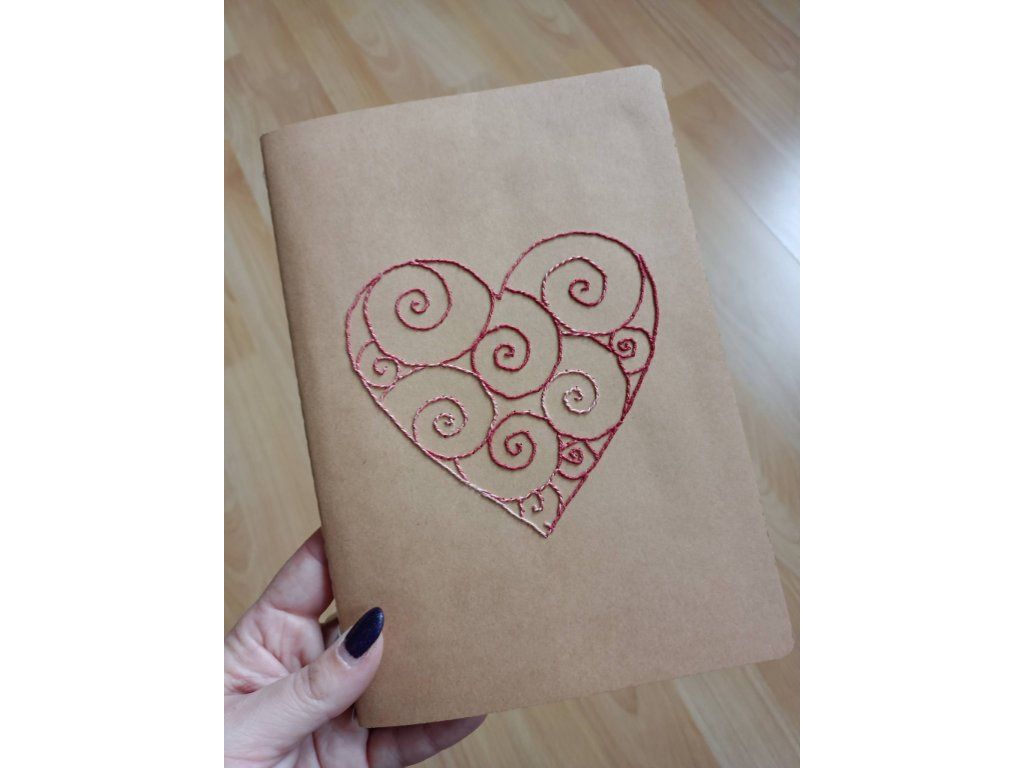 Vyšívaný sešit srdce